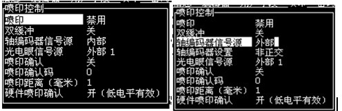 b) 光電眼信號源: 選擇為“外部1”。若使用連續(xù)噴印沒有外接電眼時(shí)需選擇為“無”。