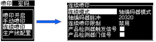 Ø 如果啟用此選項(xiàng),噴碼機(jī)必須獲取連續(xù)的信號以繼續(xù)噴印。 以上兩種信號的設(shè)置必須與現(xiàn)場情況匹配,否則,達(dá)不到所需要的連續(xù)噴印效果。